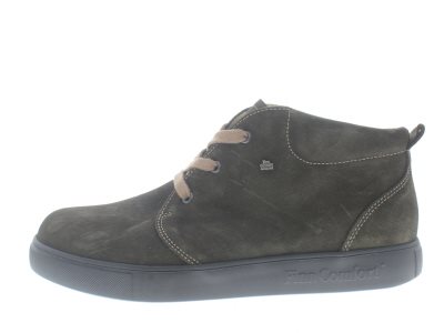 Finn Comfort casual heren bootie, model Warwick uit de CitySport lijn, lichtgewicht dempende buitenzool, deze is vrij flexibel waardoor je de autonomie over je eigen afwikkelpatroon behoudt, groen suède leer, valt als een wijdte G/H, geschikt voor de gemiddelde tot iets bredere voet, uitneembaar voetbed.