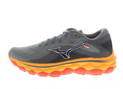 Mizuno Enerzy dames runner, model Wave Sky 7. Voorzien van een dubbel-dempende zool en een verlengde afwikkel-ondersteuning tot aan het grote teengewricht. Met een Mizuno Enerzy super schokabsorberende tussenzool die 293% zachter en 56% veerkrachtiger is dan eerder gebruikte materialen. Speciaal ontworpen voor en door hardlopers die het ultieme zwevende gevoel willen ervaren, en natuurlijk casual te dragen voor een sportieve look. Grijs geweven materiaal met oranje accenten, waar geen leer aan te pas komt, Vegan verantwoord. Valt als een wijdte G tot H, geschikt voor de normale tot iets bredere voet. Hakhoogte 40mm. Hielheffing 8mm.