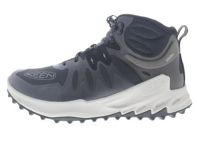 KEEN halfhoge hybride sport-wandelschoen voor heren, model Zionic Mid WP. Stevige stapper met een versnelde afwikkeling voor een verhoogde actieradius. Volledig dempende LUFT-cell (phylon) middenzool voor extra schokabsorptie met een trail profiel, perfect voor allround doeleinden. Zwart honingraat ripstop met suèdine en TPU, volledig synthetisch. KEEN.DRY waterproof technologie. Valt als een wijdte K, geschikt voor de brede voet. Uitneembaar voetbed.